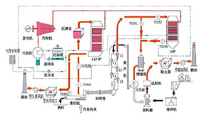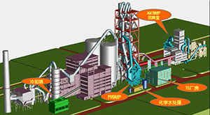 水泥厂低温余热系统(Cement Waste Heat Recovery System) 水泥厂余热发电流程图(Cement cogeneration flowchart)